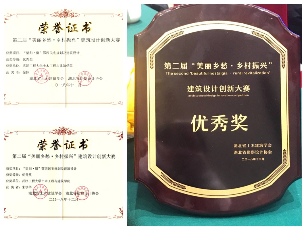 公司徐伟,朱珍华老师及团队的作品“望归·留”鄂西民宅规划与建筑设计在湖北省第二届“美丽乡愁•乡村振兴”建筑设计创新大赛获奖。本次大赛最终获奖的十一个项目作品,都很好地保留利用了乡村的原始风貌,在充分尊重乡村社会价值体系和集体感情记忆的基础上,发掘乡村的文化基因,延续乡村的历史文脉,并综合运用“在地性”、“意境化”的现代设计理念与手法打造属于乡土的、生态的、美丽的新时代乡村建筑。集中反映了近两年来省内建筑师在美丽乡村建设方面的潜心研究和深入实践。