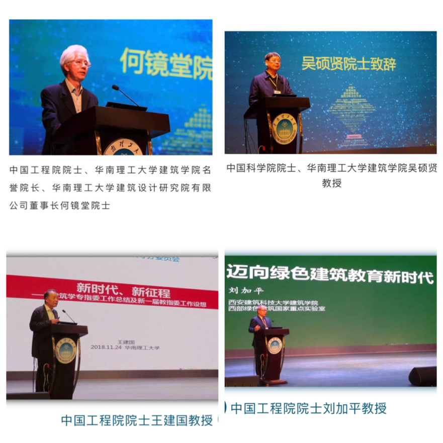 | 王建国、何镜堂、吴硕贤、刘加平等4位两院院士致辞并作主题报告 |