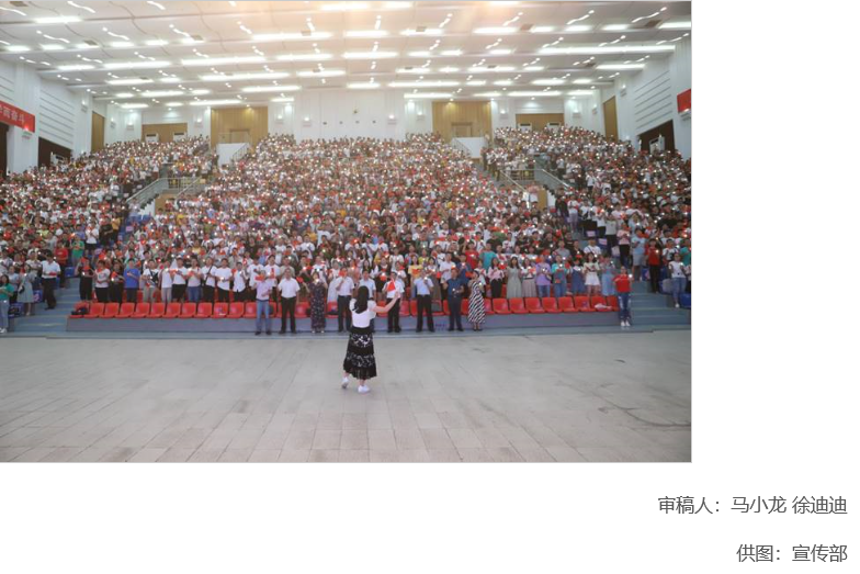 党政办公室、组织部、学工部、校团委等部门负责人,公司党委副书记、全体辅导员、班主任以及2019级新生共6000余人共同聆听了报告会。